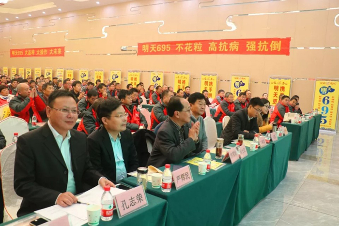 啟動(dòng)會(huì)上,河南省種子管理站品管科科長(zhǎng)鄧士政為本次大會(huì)致辭,對(duì)參會(huì)領(lǐng)導(dǎo)和經(jīng)銷商表示熱烈歡迎,并對(duì)本次會(huì)議的成功召開(kāi)表示祝賀。同時(shí),分享了河南省玉米品種的總體利用情況和利用特點(diǎn),并充分肯定了“明天695”的良好表現(xiàn)。