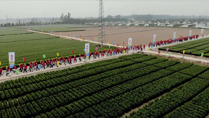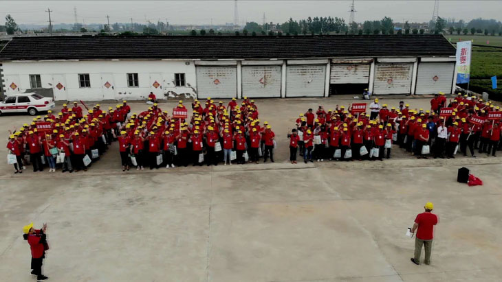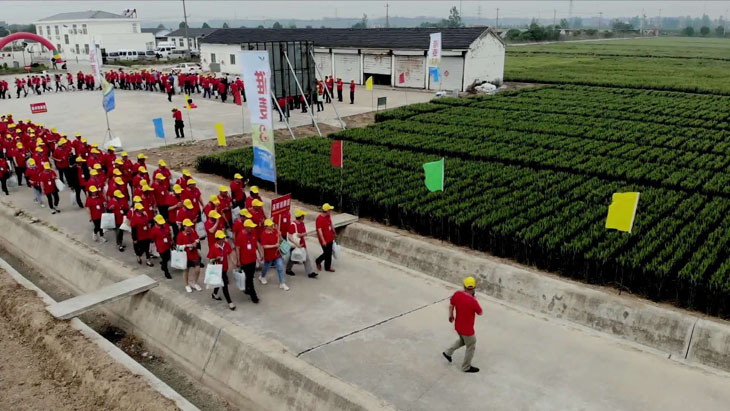 第三部分在所有觀摩環(huán)節(jié)結(jié)束后,所有參會人員以縣為單位集中在睢寧育種基地發(fā)曬場上,排成縱隊(duì)高喊“要想糧食堆成山,就種淮麥33”的口號。