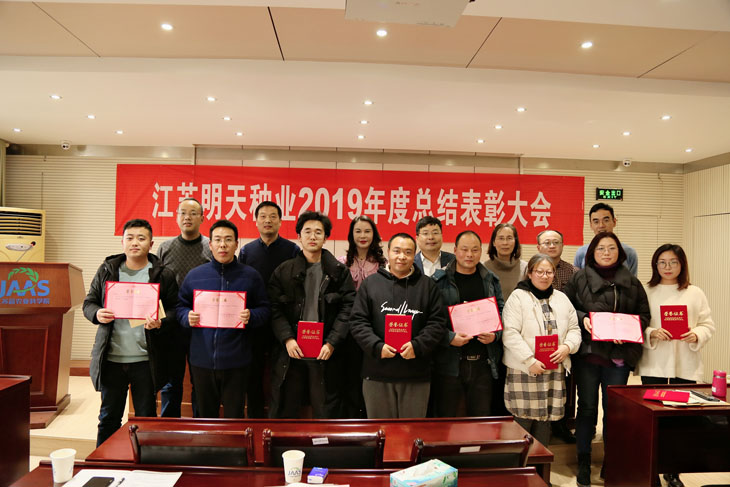 2020年1月19日下午,江蘇明天種業(yè)“2019年度總結(jié)表彰大會(huì)”在江蘇省農(nóng)科院蔬菜研究所5樓會(huì)議室隆重召開,公司胡玉萍董事長(zhǎng)、全體員工、淮安明天、河北明天、河南明天、山東寧泰、明天立新、龍信佰年、福建鴻源、南粳米業(yè)全體員工參加了本次會(huì)議。