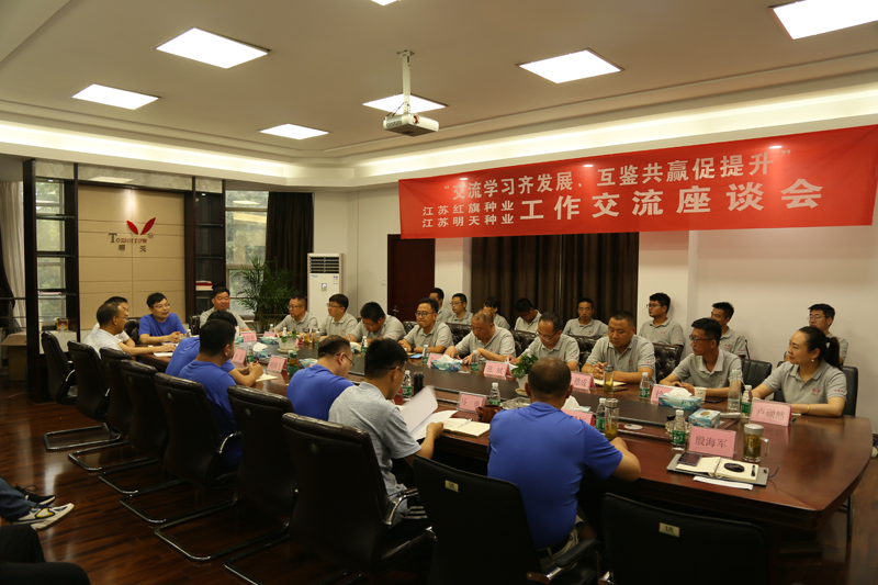 首先,明天種業(yè)總經(jīng)理嚴(yán)輝民對紅旗種業(yè)查總一行的到來,表示熱烈歡迎。嚴(yán)總表示,明天種業(yè)作為江蘇省主要農(nóng)作物種子產(chǎn)業(yè)技術(shù)創(chuàng)新戰(zhàn)略聯(lián)盟理事長單位,應(yīng)充分發(fā)揮聯(lián)盟優(yōu)勢,加強與紅旗種業(yè)等兄弟單位的交流合作,共謀發(fā)展。紅旗種業(yè)、明天種業(yè)具有各自的資源優(yōu)勢和發(fā)展特點,雙方在互鑒共贏方面,將來可以尋求更多的切入點開展交流、合作,為江蘇種業(yè)協(xié)同發(fā)展、江蘇糧食安全保障工作,共同提供強有力的支撐。隨后,雙方相關(guān)人員進行了詳盡的專題匯報、座談和交流。查總在對座談會總結(jié)時表示,雙方將各自成功的經(jīng)驗,毫無保留的做了分享,這是對此次會議“交流學(xué)習(xí)齊發(fā)展、互鑒共贏促提升”主題的深刻理解,成效明顯。以后要將這種交流機制常態(tài)化,尋求機會、通力合作、互助共贏。
