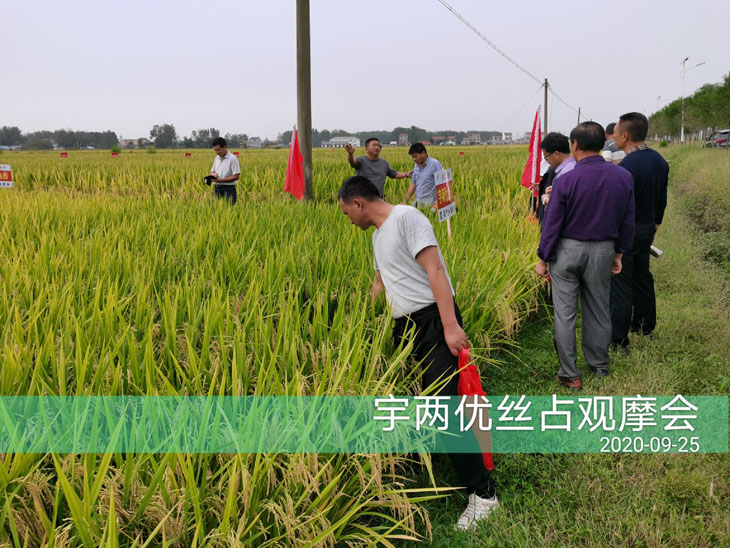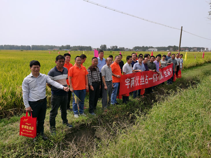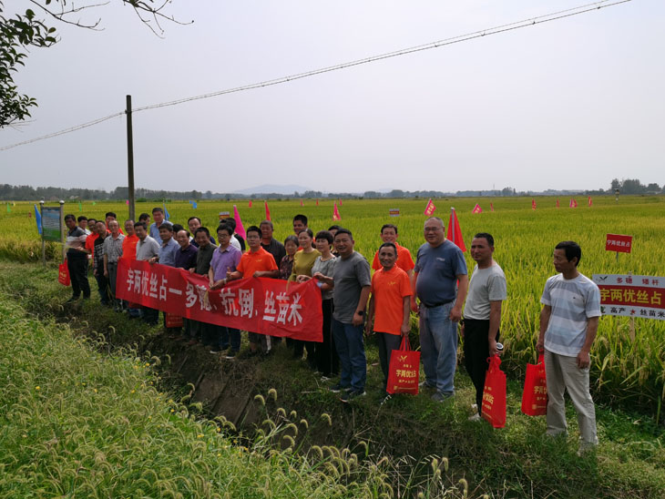 9月25日上午,公司安排大巴車帶著與會伙伴前往定遠縣池河鎮(zhèn)農委機插秧示范田。涼意叩開秋日的美好,相伴迎來收獲的季節(jié),在陣陣微風的吹拂下,各合作伙伴陸續(xù)走向田間,仔細了解宇兩優(yōu)絲占在大田的分蘗、結實率,抗倒性等特性,驚嘆聲不絕于耳,捻開稻谷后,米質晶瑩剔透,再次獲得了與會伙伴的一致認可。