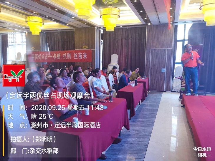 秋高氣爽,天公作美,9月24日-25日,2020年度江蘇明天種業(yè)科技股份有限公司“宇兩優(yōu)絲占”安徽省現場觀摩會在安徽定遠成功召開,公司總經理助理楊海波,雜交水稻部副經理丁震、定遠縣總代理鄭守健以及安徽省其他各縣代理商相聚在總理故鄉(xiāng)定遠,共同見證宇兩優(yōu)絲占在大田的優(yōu)異表現。