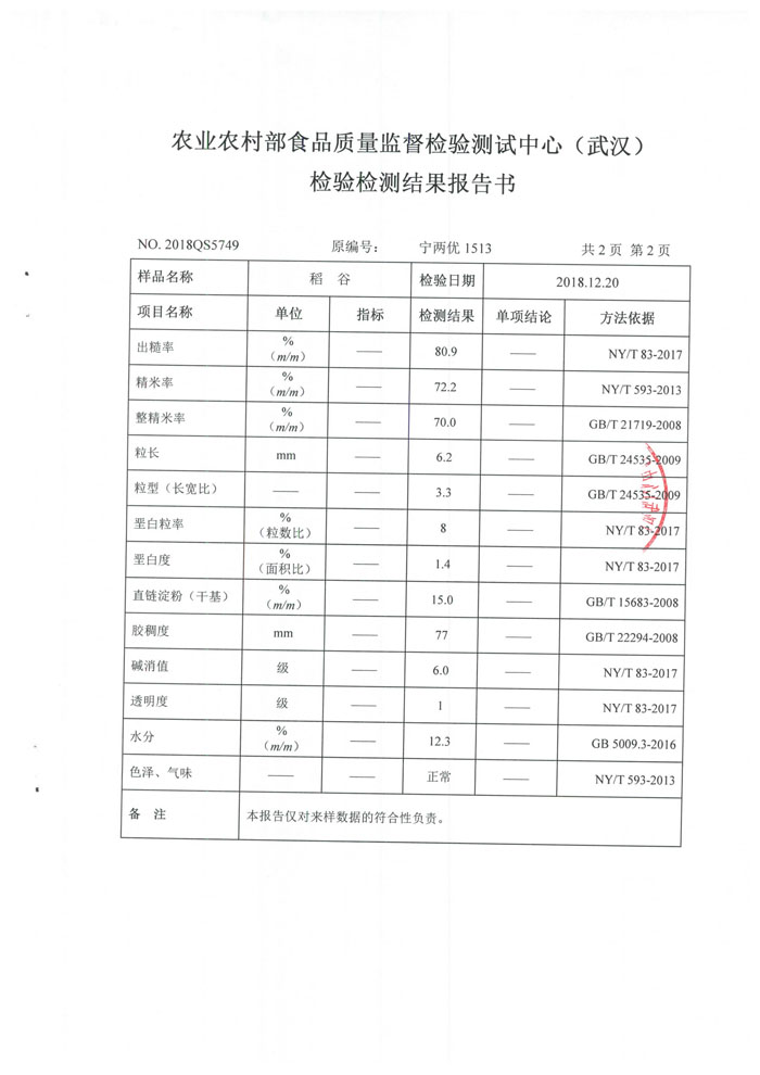 5、高出米率、米質(zhì)優(yōu):2018年武漢米質(zhì)鑒定主要指標(biāo):出糙率80.9%,精米率72.2%,整精米率70.0%,粒長6.2mm,長寬比3.3,堊白粒率8%,堊白度1.4%,膠稠度77毫米,直鏈淀粉含量15.0%。堿消值級6.0,透明度1級。米質(zhì)優(yōu)標(biāo)2級米。