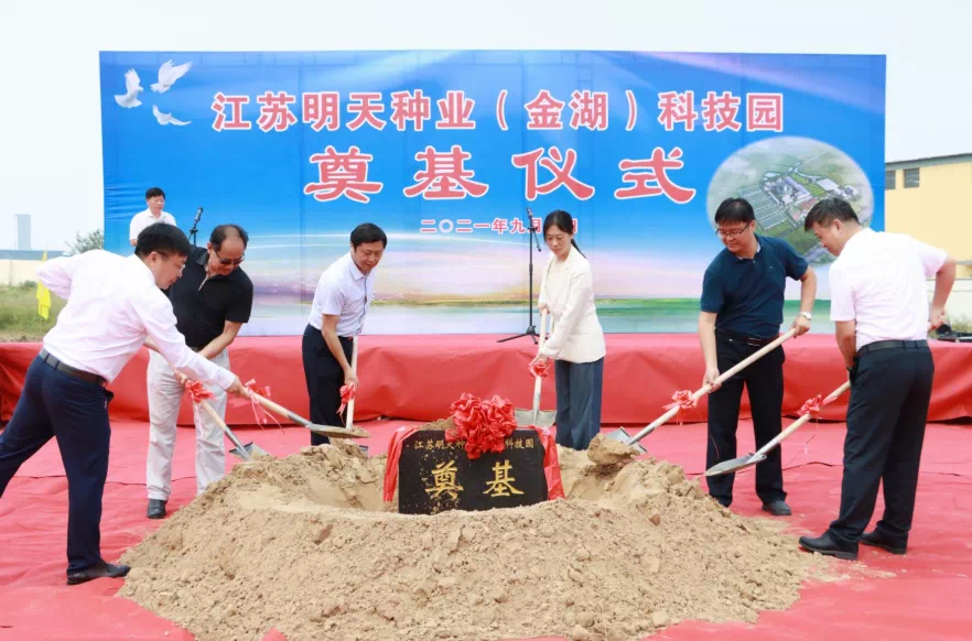 9月10日上午,江蘇明天種業(yè)(金湖)科技園在金湖縣奠基儀式舉行。省農(nóng)業(yè)農(nóng)村廳二級巡視員俞衛(wèi)東、縣長萬旭東、省種子站二級調(diào)研員陳國斌、副縣長朱亞、明天種業(yè)總經(jīng)理嚴輝民等出席儀式,共同為項目培土奠基。