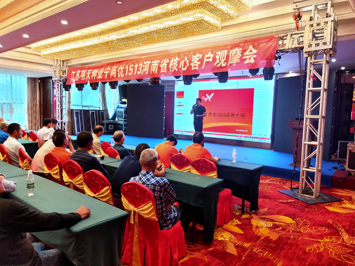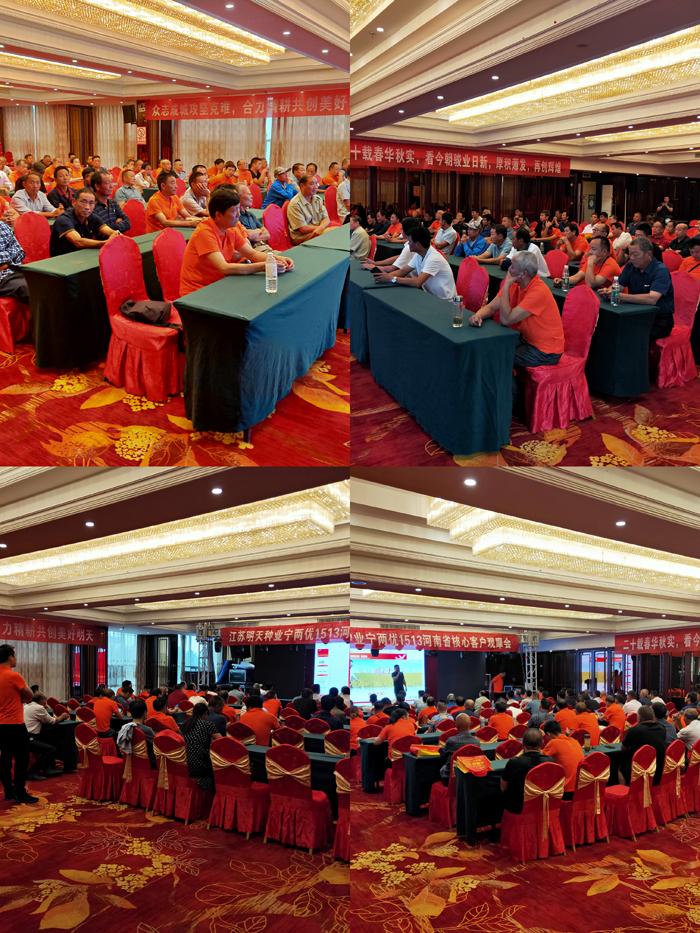 會(huì)議第二項(xiàng),固始縣觀堂鄉(xiāng)零售商許向東向大家介紹了所在區(qū)域“寧兩優(yōu)1513”的表現(xiàn)情況:雖然今年“寧兩優(yōu)1513”只是剛開始示范,但是所有種過“寧兩優(yōu)1513”的農(nóng)戶都說好,明年都會(huì)增加種植面積! 會(huì)議第三項(xiàng)由羅山縣代理商許有勇發(fā)言,許總今年在信陽地區(qū)鋪貨布點(diǎn)最多,對(duì)“寧兩優(yōu)1513”的表現(xiàn)也掌握的更全面。他表示:能達(dá)到“寧兩優(yōu)1513”這種穗型并且結(jié)實(shí)率在90%以上的品種不常見,27.7克的千粒重,增產(chǎn)潛力巨大,是一個(gè)極具推廣價(jià)值的品種! 此次會(huì)議的召開,讓更多的種業(yè)界朋友了解了“寧兩優(yōu)1513”這個(gè)品種,對(duì)信陽地區(qū)推廣打下了堅(jiān)實(shí)的基礎(chǔ)! 布局謀發(fā)展,求變贏未來,江蘇明天種業(yè)愿與您一道創(chuàng)造種業(yè)的美好明天!