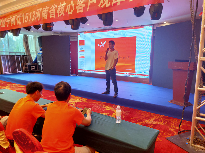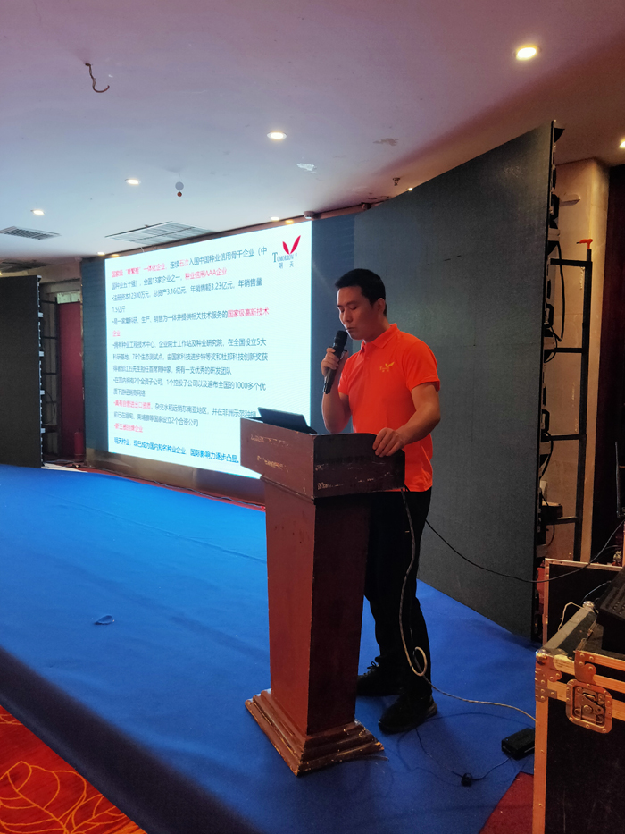 本次會(huì)議由江蘇明天種業(yè)雜交水稻部副經(jīng)理曹恒主持!9月5日10:30伴隨著會(huì)場激揚(yáng)的音樂,宣布會(huì)議開始!