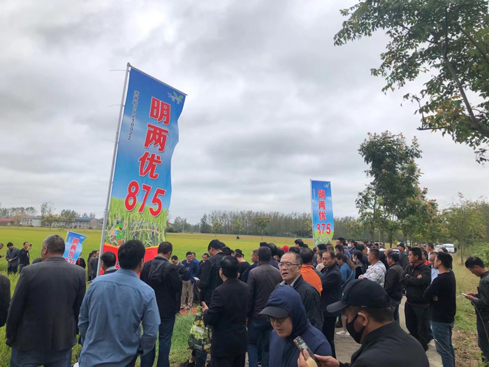 金桂飄香,豐收在即。公司于10月7日-8日在江蘇省沭陽縣隆重召開 “明兩優(yōu)875”麥后機(jī)插新品發(fā)布會暨田間觀摩會議。參加會議的有江蘇明天種業(yè)科技股份有限公司代表,各縣市經(jīng)銷商、種植大戶、育秧合作社代表共計(jì)200余人參加會議。