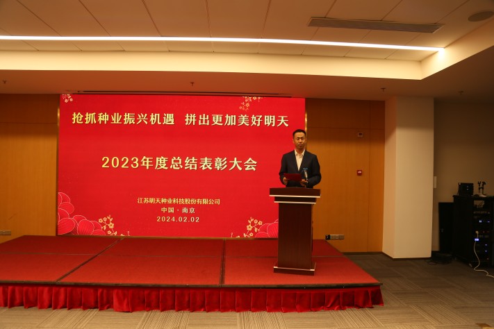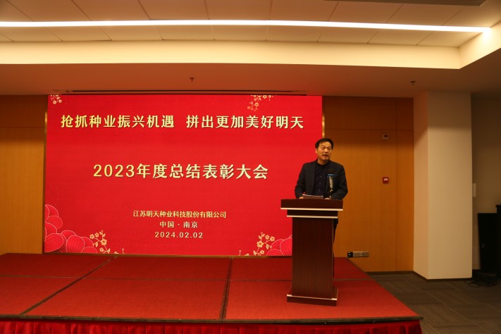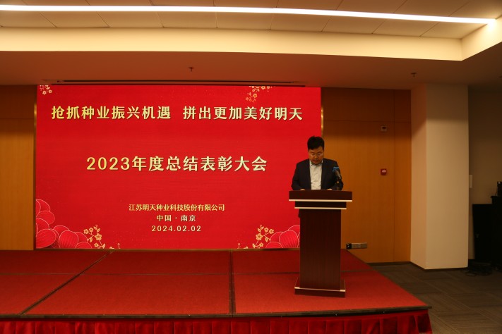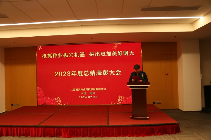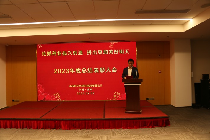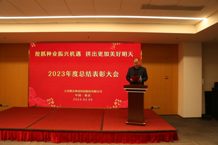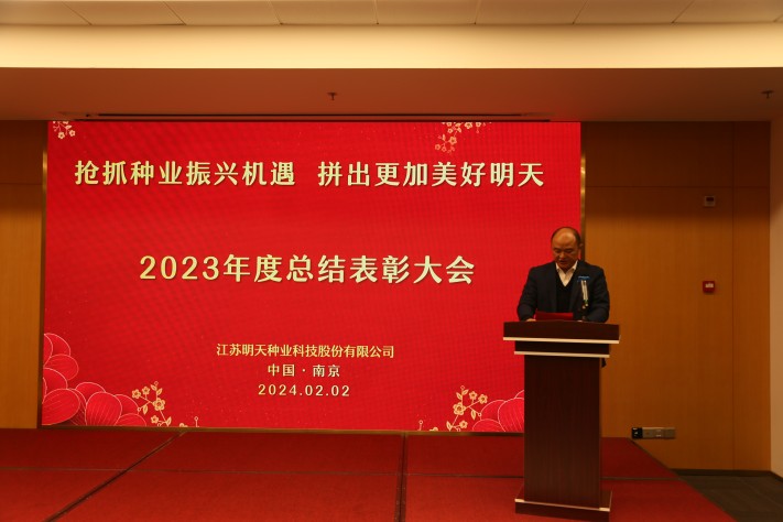 “春耕夏耘,秋收冬藏”,2月2日江蘇明天種業(yè)全體人員齊聚南京圣和文化交流中心隆重召開2023年度總結(jié)表彰大會(huì)。公司全體領(lǐng)導(dǎo)班子成員、2023年度先進(jìn)和優(yōu)秀員工代表及子公司員工等160余人參加了會(huì)議,會(huì)議由公司副總經(jīng)理胡玉成主持。